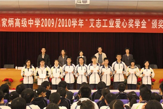 收獲的季節(jié),燦爛的笑臉。2010年10月21日下午2點(diǎn),第二屆“艾志工業(yè)愛心獎(jiǎng)學(xué)金”頒獎(jiǎng)儀式在田家炳高級(jí)中學(xué)報(bào)告廳隆重舉行,鼓樓區(qū)政府馮雯蘭副區(qū)長、教育局周越古局長、艾志工業(yè)技術(shù)集團(tuán)有限公司楊翊之行政總裁、田家炳高級(jí)中學(xué)華勇校長、黨委唐偉書記、曹李莉副校長等出席了頒獎(jiǎng)儀式。