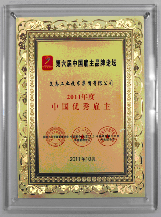 “2011年度中國最佳雇主企業(yè)”年度評選頒獎盛典于10月22日在北京隆重召開,艾志工業(yè)技術集團公司獲選得“2011年度中國優(yōu)秀雇主企業(yè)”稱號。