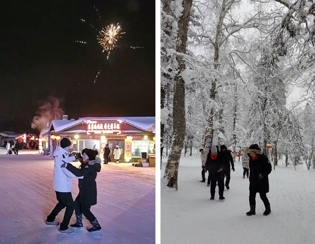 在雪鄉(xiāng)的星空下,在濃濃的春節(jié)氛圍中,在絢爛煙花的背景下,這些來(lái)自南方的朋友時(shí)而放歌,時(shí)而起舞,歡樂(lè)非?!?