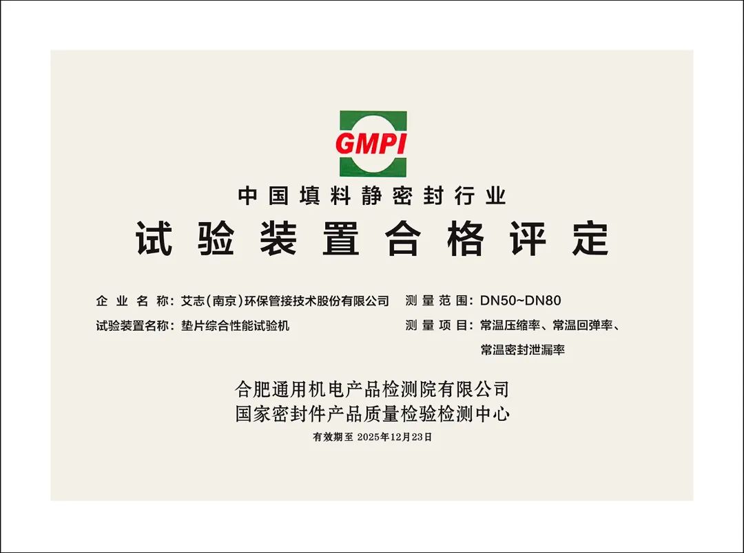 經合肥通用機電產品檢測院及國家密封件產品質量檢測中心對我司試驗裝置墊片綜合性能試驗機的檢測,特授予我司 “試驗裝置合格評定” 證書;??