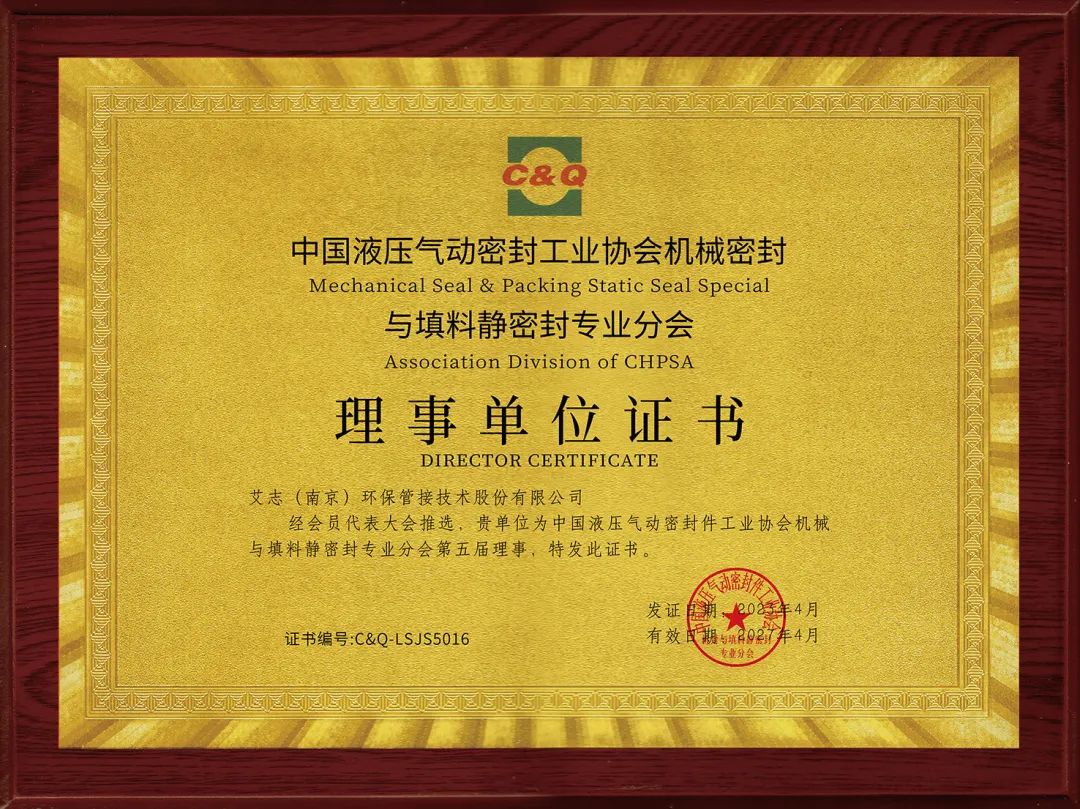 經會員代表大會推選,我司被評為中國液壓氣動密封工業(yè)協(xié)會機械密封與填料靜密封專業(yè)分會的第五屆理事,并頒發(fā)了 “理事單位證書” 。??